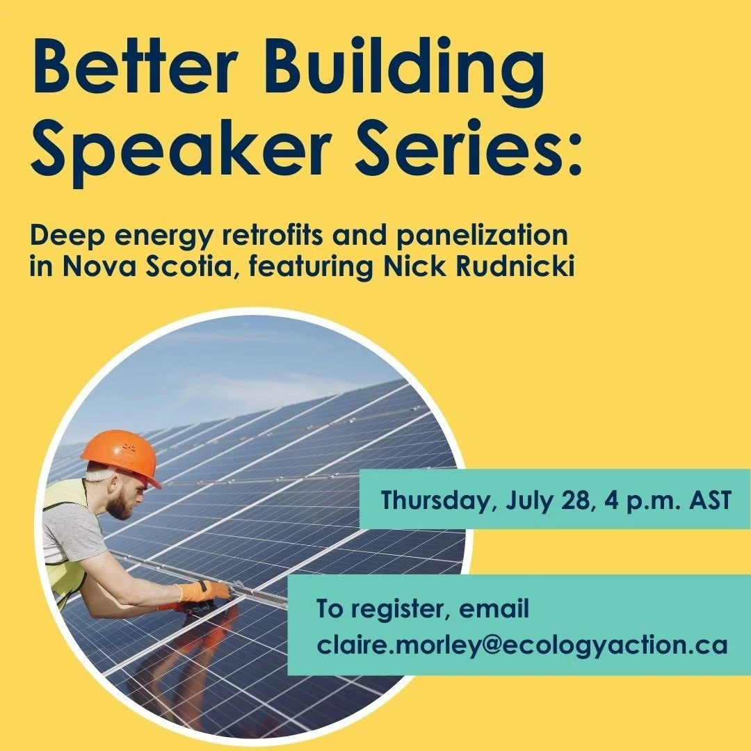Join Faithful Footprints Atlantic Regional Support Centre , Ecology Action Centre for the latest Better Building Speaker Series online-webinar. Hear from Nick Rudnicki, CEO of RSI Projects and Technical Director of The Recover Initiative, as he speaks about deep energy retrofits and panelization in Nova Scotia.